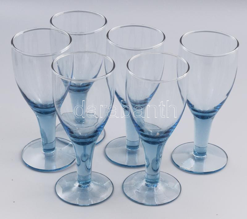 Leírás: Kéken színezett pohár garnitúra, 6 db, jelzés nélkül, hibátlan, m:18 cm
