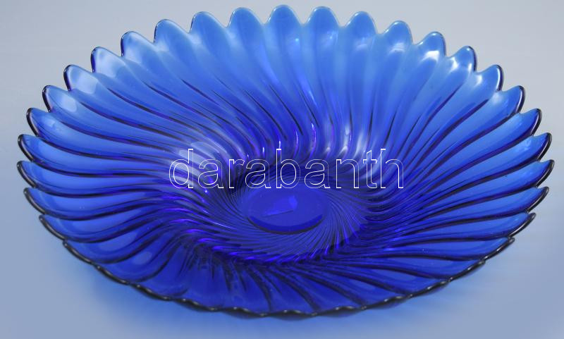 Leírás: Királykék üveg kínáló, jelzés nélkül, d: 33 cm