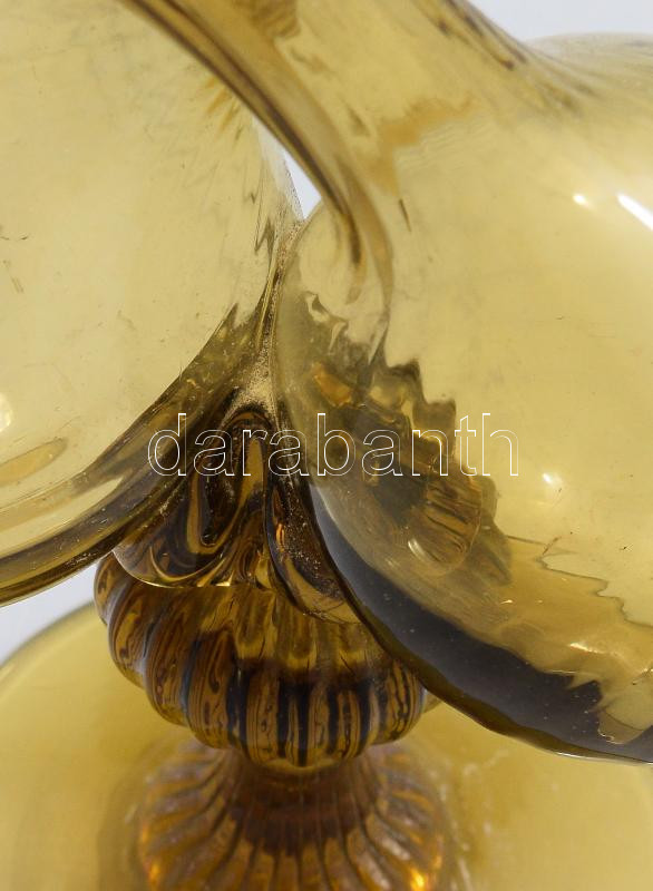 Leírás: Olaj-ecet tartó. Erdély, cca 1800, színezett hutaüveg, hibátlan, m: 21 cm