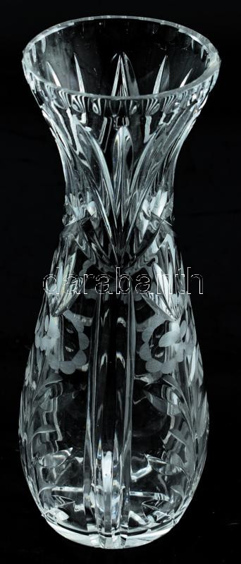 Leírás: Ólomkristály váza, csiszolt és hántolt mintával, hibátlan, m: 26,5 cm