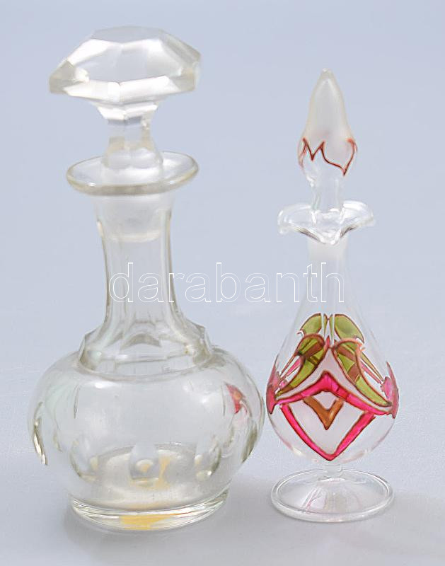 Leírás: Régi parfümös és olajos üveg, m: 11-12 cm