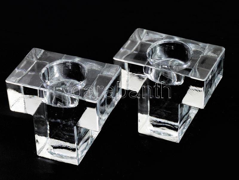 Leírás: Skandináv brutalista öntött kristály gyertyatartó pár, jelzés nélkül, hibátlan, 9,5x9 cm