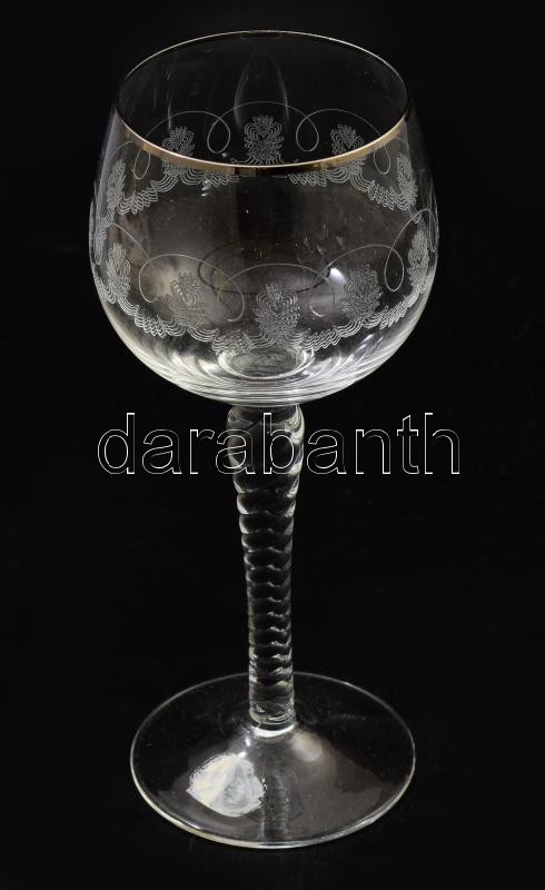Leírás: cca 1900 Osztrák kristály likőrös pohár szett, 5 darab, ezüstözött peremmel, hibátlan, m: 16 cm