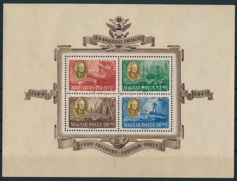 Leírás: 1947 Roosevelt blokk MBK 1039, Mi Bl 10 (** 30.000) (apró hibák)