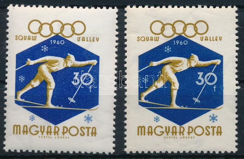 Leírás: 1960 Téli Olimpia (I.) - Squaw Valley 30f "bekötött ujj" lemezhibával + támpéldány (**10.000)