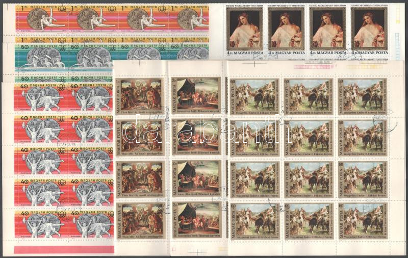 Leírás: 1976 Festmények, Olimpiai érmesek kiadásokból 26 db hajtott teljes ív (nem teljes sorok)