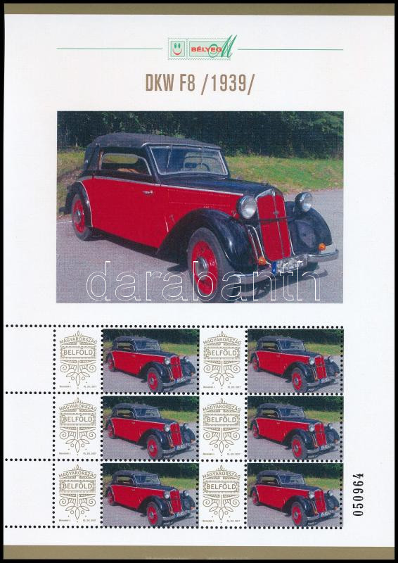 Leírás: 2025 DKW F8/1939/ 6 bélyeges megszemélyesített kisív dísztokban