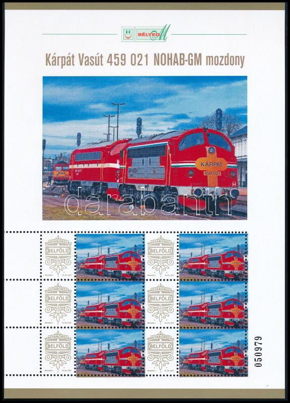 Leírás: 2025 Kárpát Vasút 459 021 NOHAB-GM mozdony 6 bélyeges megszemélyesített kisív dísztokban