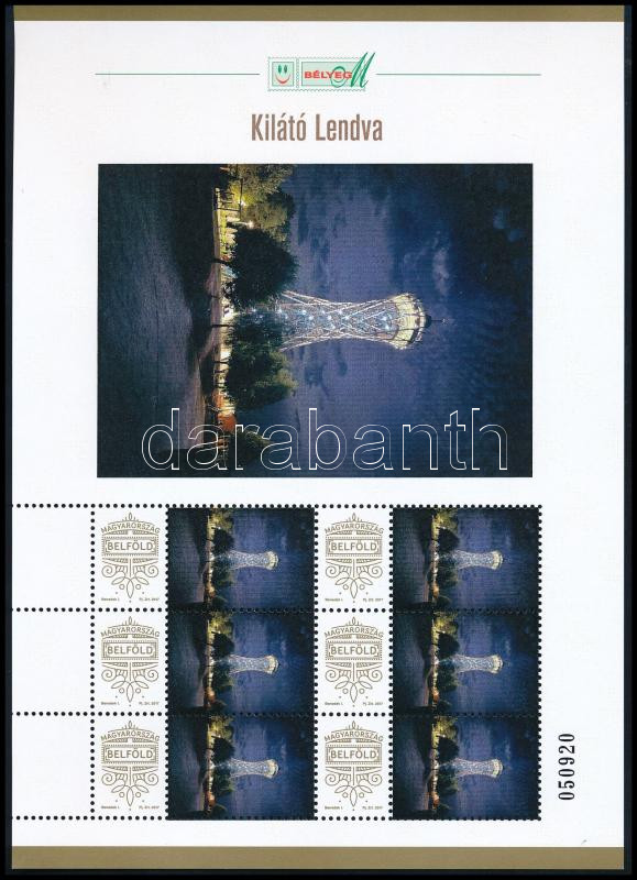 Leírás: 2025 Kilátó Lendva 6 bélyeges megszemélyesített kisív dísztokban