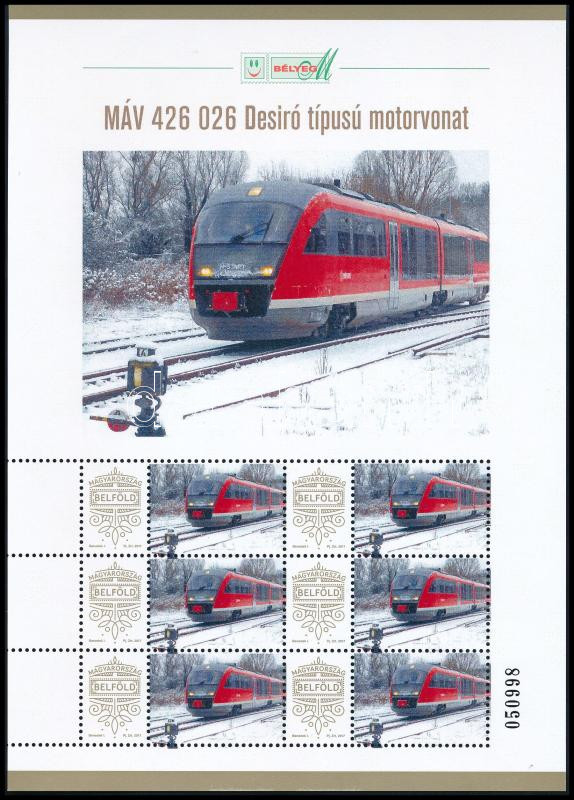 Leírás: 2025 MÁV 426 026 Desiró típusú motorvonat 6 bélyeges megszemélyesített kisív dísztokban