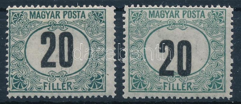 Leírás: 1920 Magyar Posta portó 20f elcsúszott értékszámmal + támpéldány