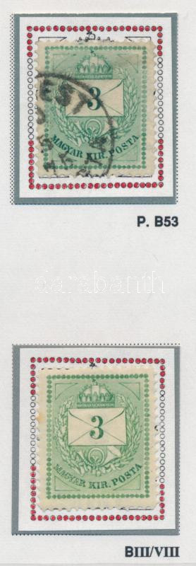 1874 2 db Színesszámú 3kr durva gyöngyjavítással (ex Orbán, Sebestyén aranyérmes kiállítási anyagból) (a falcos bélyegen rozsdapötty / stain spot on the hinged one)