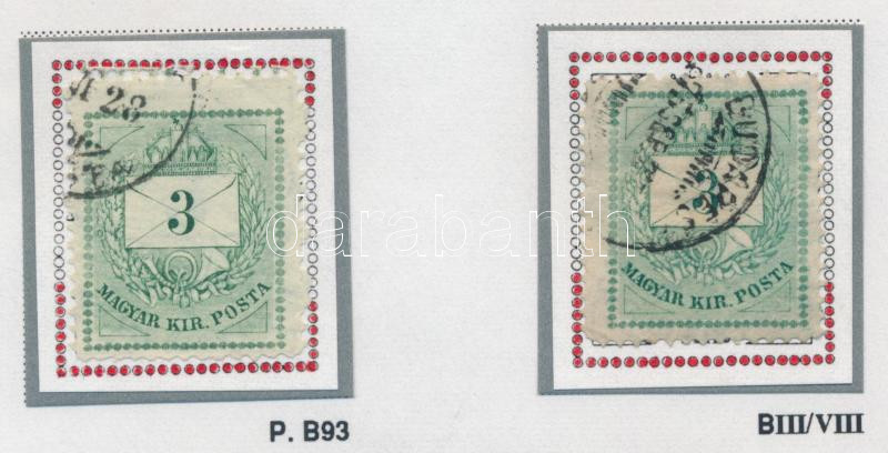 Leírás: 1874 2 db Színesszámú 3kr durva gyöngyjavítással (ex Orbán, Sebestyén aranyérmes kiállítási anyagból)
