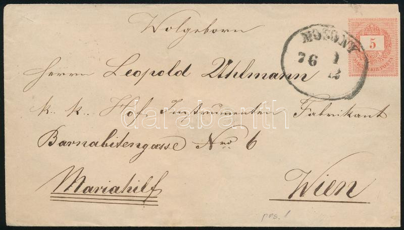 Leírás: 1876 5kr díjjegyes boríték "MOSONY" - "WIEN"
