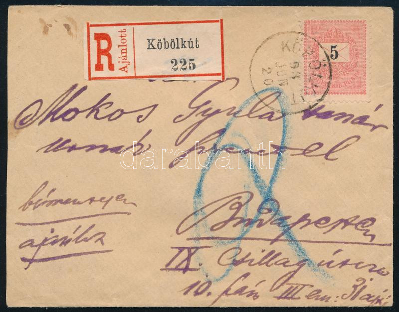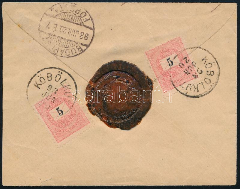 Leírás: 1893 3 x 5kr ajánlott levélen "KÖBÖLKÚT" - Budapest