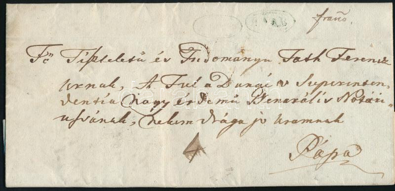 1819 Franco levél zöld "RAAB" - Pápa https://www.darabanth.com/hu/498-Gyorsarveres/498.0/Magyar-filatelia-es-postatortenet/Belyeg-elotti-levelek~2500016/1819-Franco-level-zold-RAAB-Papa~II3401550