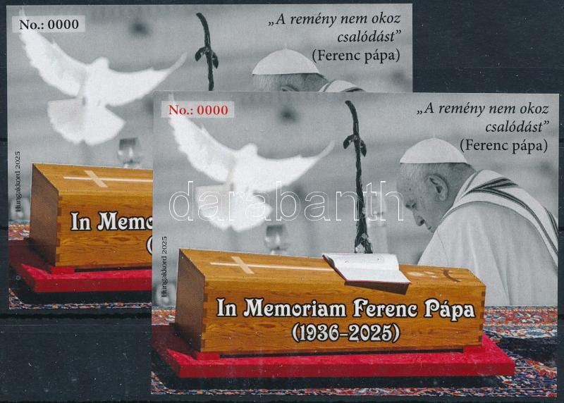 Leírás: 2025 In Memoriam Ferenc pápa emlékívpár piros-fekete azonos sorszámmal "0000"