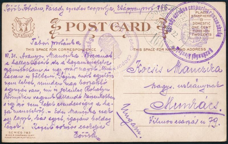 Leírás: 1916 Tábori posta képeslap "Várady ezredes csoportparancsnokság gazdasági hivatala" + "HP 166"