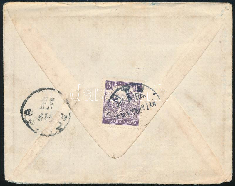 Leírás: 1917 Tábori posta levél, lila "K.u.K. 141.INFANTERIEBRIGADE -KOMMANDO" bélyegzéssel Földesre, hátoldalán Fehérszámú Arató 15f bélyeggel