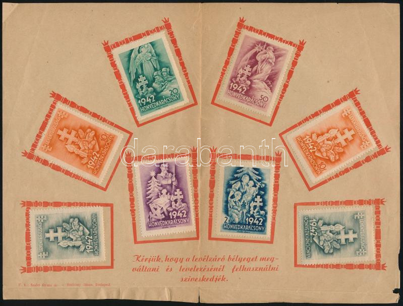 Leírás: 1942 Honvédkarácsony sor, 8 db klf segélybélyeg eredeti emléklapon