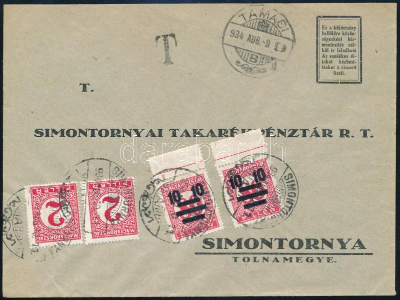 1934 Levél 4 db portó bélyeggel