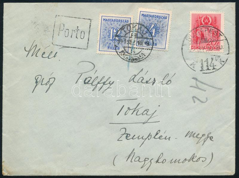 Leírás: 1941 Levél Budapestről Tokajba 4f és 12f portó bélyeggel