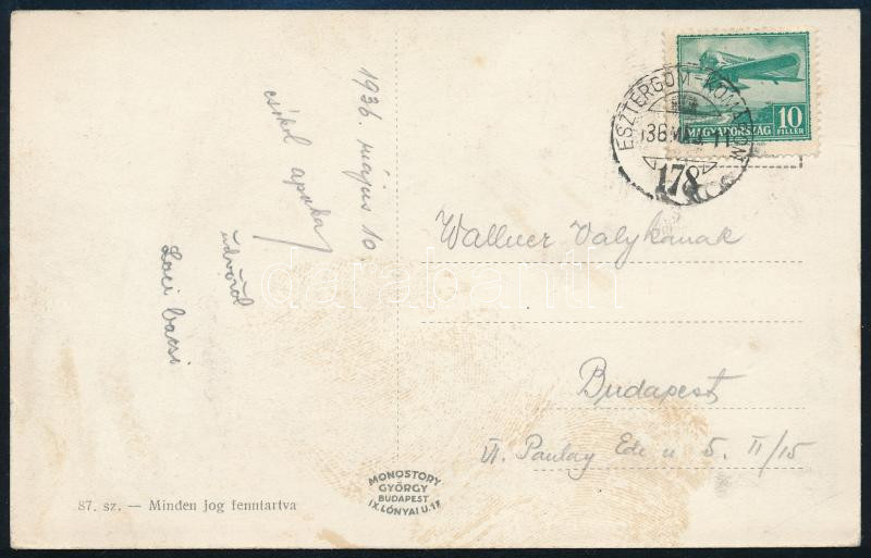 1936 Képeslap "ESZTERGOM-KOMÁROM" vasúti bélyegzéssel https://www.darabanth.com/hu/498-Gyorsarveres/498.0/Magyar-filatelia-es-postatortenet/Pengo-idoszak-1926-1944~2500024/3Cbr-3E-1936-Kepeslap-ESZTERGOM-KOMAROM-vasuti-belyegzessel~II3280035