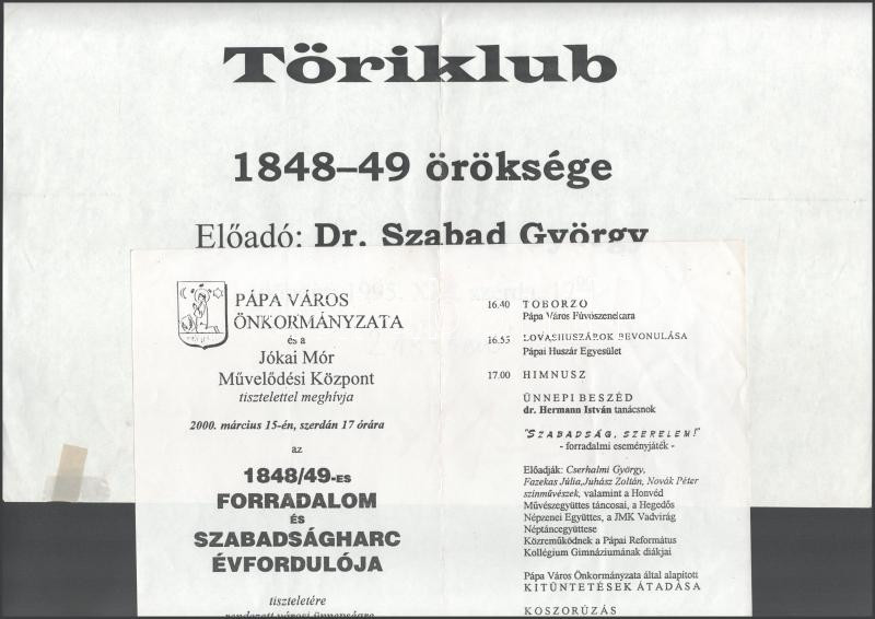 Leírás: Modern meghívó tétel 1848-49-es eseményekkel kapcsolatos ünnepségekre