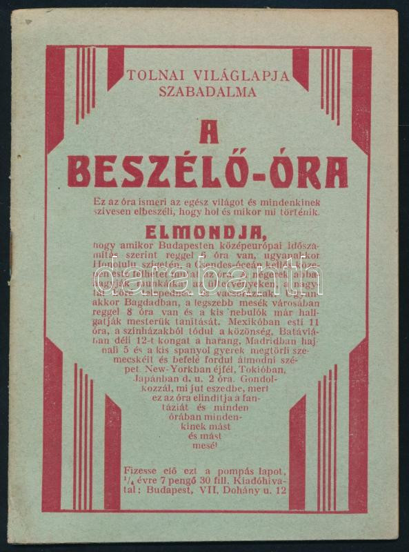 cca 1929 A beszélő-óra, Tolnai Világlapja szabadalma, benne világóra é... https://www.darabanth.com/hu/498-Gyorsarveres/498.0/Mutargy-papirregiseg-egyeb/Nyomtatvanyok~500019/cca-1929-A-beszelo-ora-Tolnai-Vilaglapja-szabadalma-benne-vilagora-es-Delka-ciporeklam~II3400769