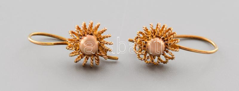 Leírás: Arany (Au) 14K fülbevalópár, jelzett, h: 2 c, nettó: 2,3 g