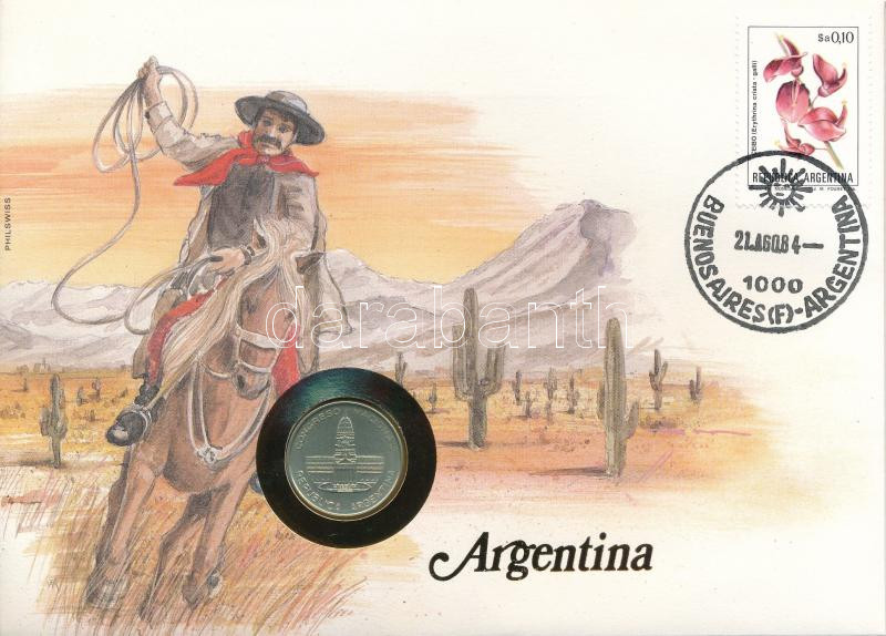 Argentína 1984. 1P Al felbélyegzett borítékban, bélyegzéssel, német nyelvű leírással T:AU Argentina 1984. 1 Peso Al in envelope with stamp, cancellation and prospectus in German C:AU