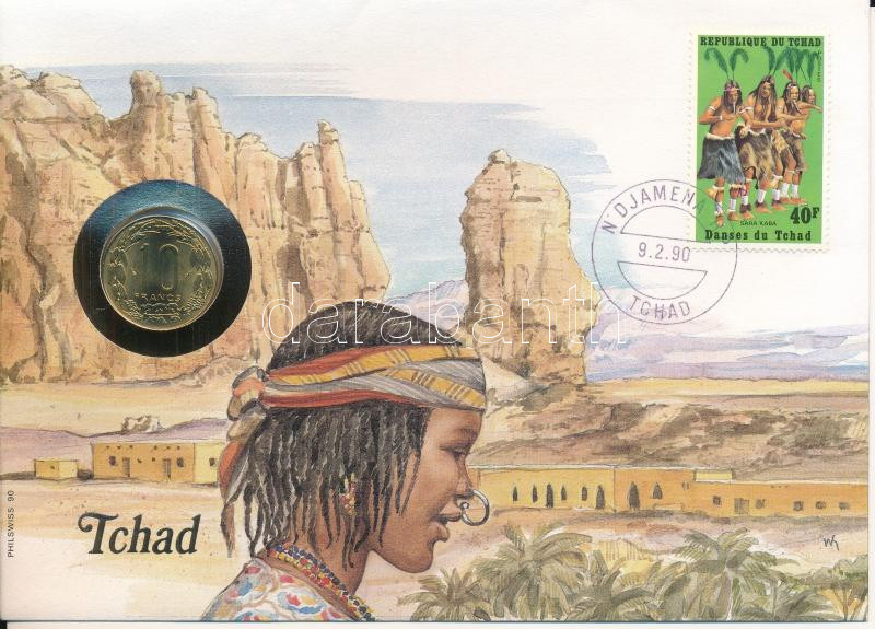 Csád 1983. 10Fr felbélyegzett borítékban, alkalmi bélyegzéssel, német nyelvű leírással T:UNC Chad 1983. 10 Francs in envelope with stamp and cancellation, with German description C:UNC