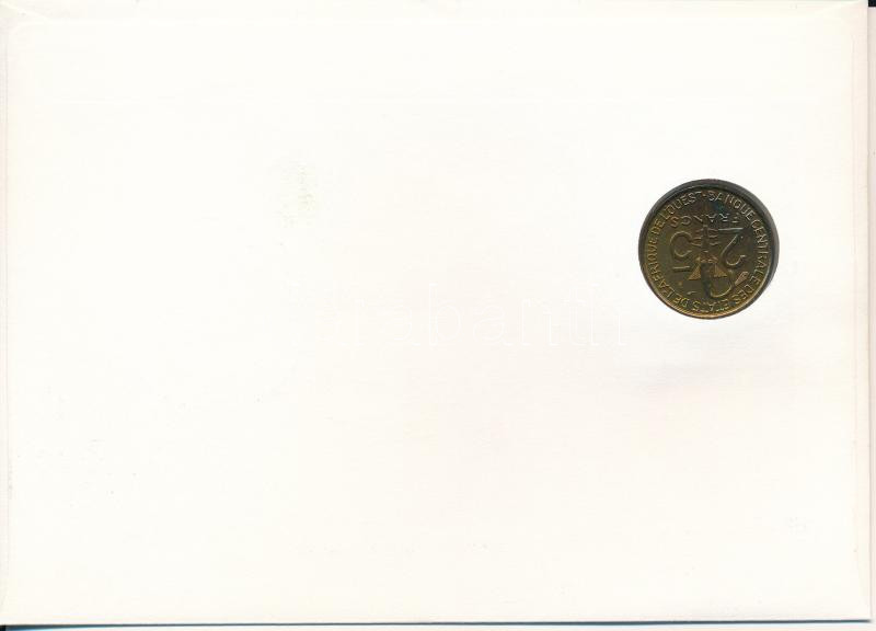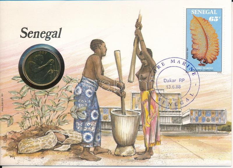 Közép-afrikai Államok 1989. 25Fr Al-bronz "Szenegál" felbélyegzett borítékban, bélyegzéssel, német nyelvű leírással T:UNC Central African States 1989. 25 Francs Al-bronze in "Senegal" envelope with stamp and cancellation, with German description C:UNC