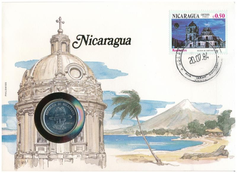 Nicaragua 1983. 50c acél felbélyegzett borítékon, bélyegzéssel, német nyelvű leírással T:UNC Nicaragua 1983. 50 Centavos steel in envelope with stamp and German description C:UNC