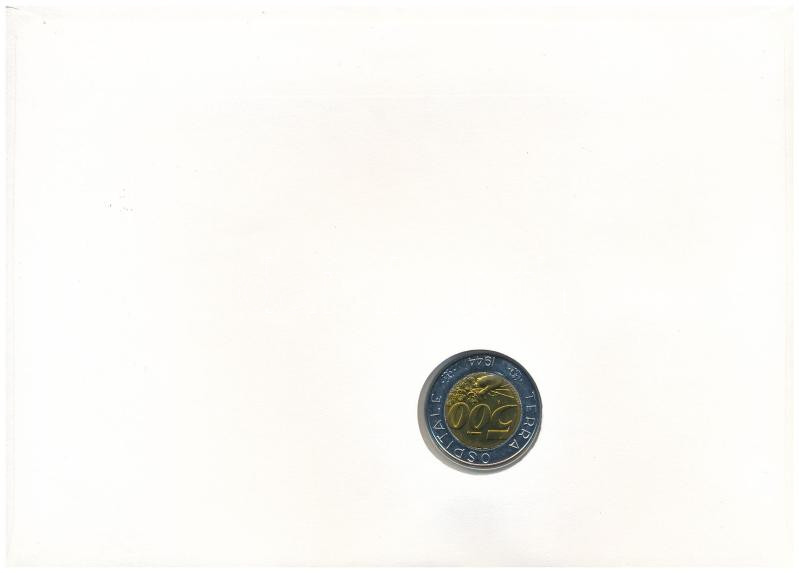San Marino 1991. 500 Lire bimetallic coin in envelope with stamp and cancellation, with German description C:UNC