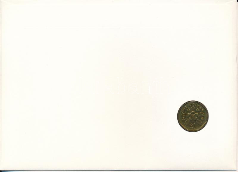 Szingapúr 1988. 1$ Al-Br felbélyegzett borítékban, bélyegzéssel, német nyelvű tájékoztatóval T:UNC Singapore 1988. 1 Dollar Al-Br in envelope with stamp, cancellation and a prospectus in german C:UNC