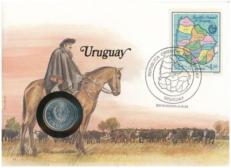 Uruguay 1980. 1P Cu-Ni felbélyegzett borítékban, bélyegzéssel, német nyelvű leírással T:UNC