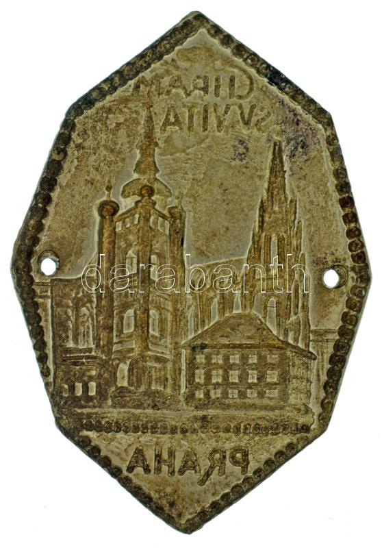 Leírás: DN "Szent Vitus-székesegyház - Prága " egyoldalas fém lemez felvarró (~26x38mm) T:XF, patina