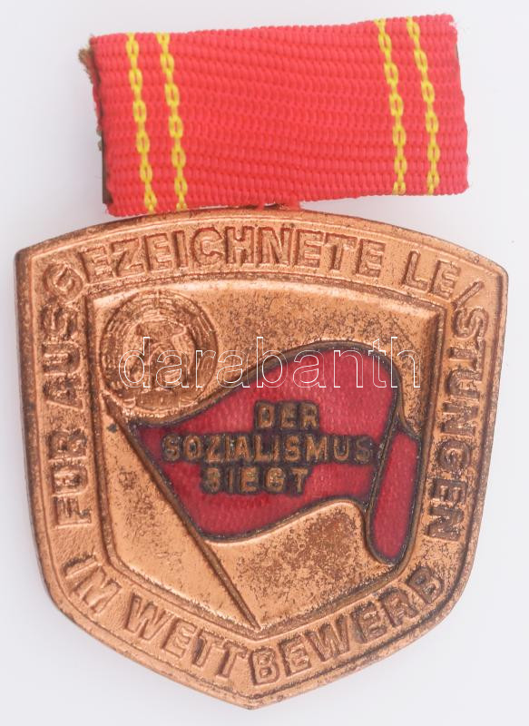 Német Demokratikus Köztársaság ~1960. "Für ausgezeichnete Leistungen im Wettbewerb (A versenyen nyújtott kiváló teljesítményért)" zománcozott bronz kitüntetés tokban T:AU