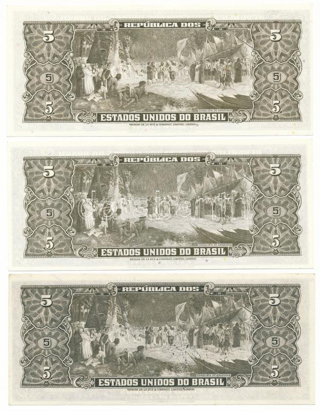 Brazil ND(1950) 5 Cruzeiros + ND(1962) 5 Cruzeiros + ND(1964) 5 Cruzeiros C:UNC-AU, folded corner