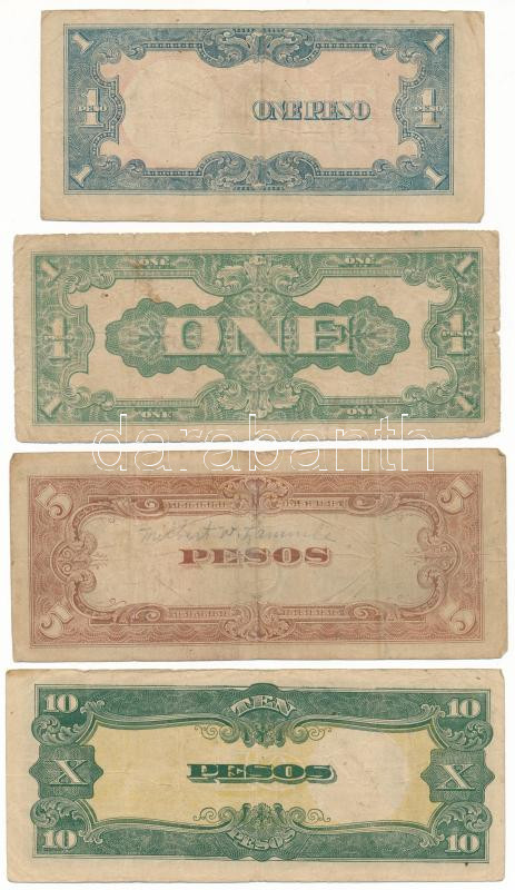 Philippines / Japanese occupation ND(1942) 1 Peso + ND(1943) 1 Peso + 5 Pesos + 10 Pesos C:F,VG