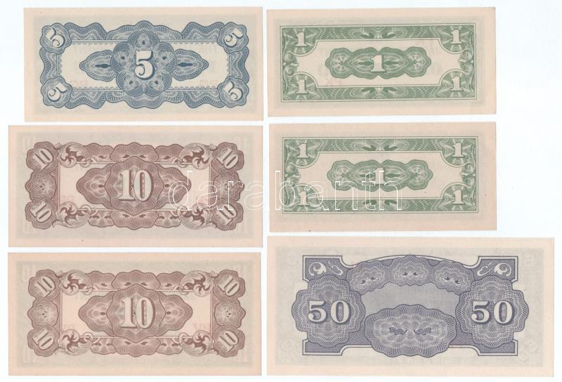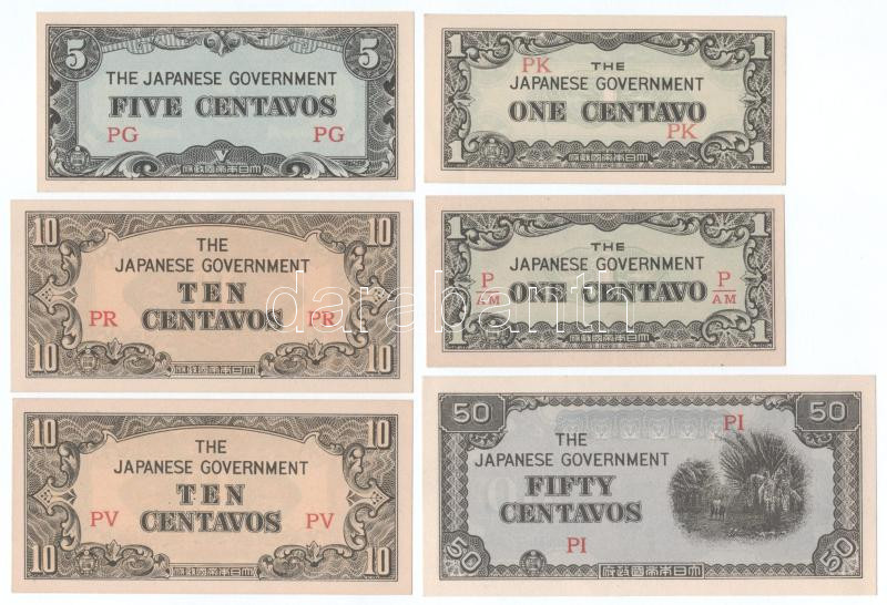 Leírás: Fülöp-szigetek / Japán megszállás DN(1942) 1c (2xklf: "P/AM" + "PK") + 5c "PG" + 10c (2xklf: "PR" + "PV") + 50c "PI" T:UNC,AU