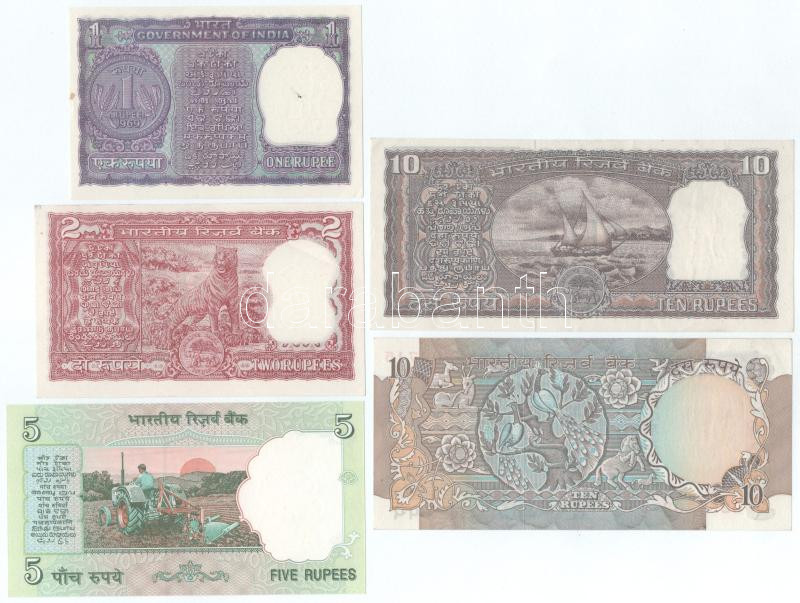 Leírás: India 1969. 1R + DN(1977-1982) 2R + DN(2002-2003) 5R + DN(1977) 10R + DN(1977-1982) 10R T:AU,XF, egyiken tűzőgéplyuk