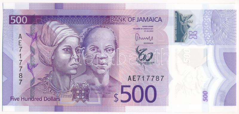 Leírás: Jamaika 2022. 500$ "A függetlenség 60. évfordulója", "AE717787" T:UNC