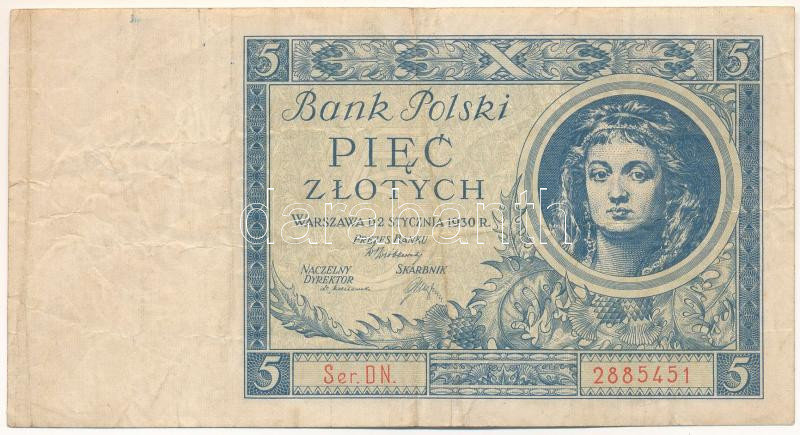 Poland 1930. 5 Zlo... https://www.darabanth.com/hu/498-Gyorsarveres/498.0/Numizmatika/Kulfoldi-bankjegyek~1000103/Lengyelorszag-1930-5Zl-DN-2885451-TF3Cbr-3E-Poland-1930-5-Zlotych-DN-2885451-CF3Cbr-3E-Krau~II3393853