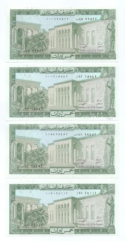 Libanon 1986. 5L (4x) T:UNC Lebanon 1986. 5 Livres (4x) C:UNC Krause P... https://www.darabanth.com/hu/498-Gyorsarveres/498.0/Numizmatika/Kulfoldi-bankjegyek~1000103/Libanon-1986-5L-4x-TUNC-Lebanon-1986-5-Livres-4x-CUNC-Krause-P2362~II3311813