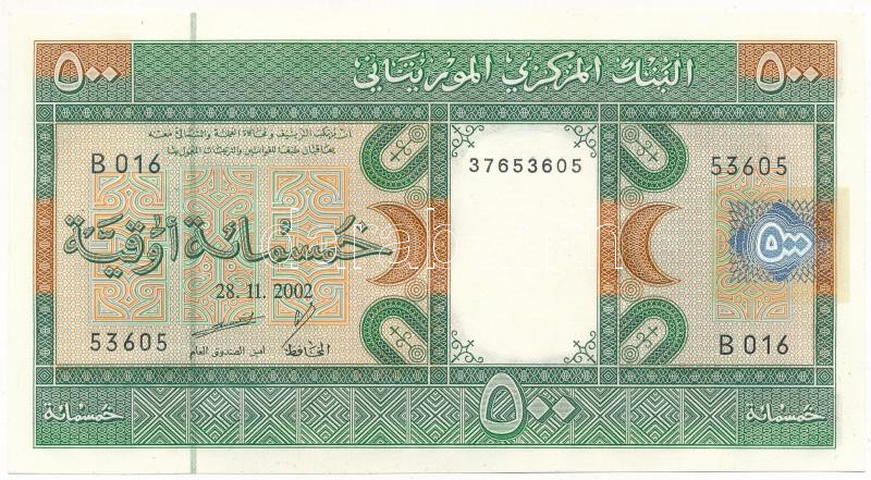 Ma... https://www.darabanth.com/hu/498-Gyorsarveres/498.0/Numizmatika/Kulfoldi-bankjegyek~1000103/Mauritania-2002-500O-B-016-53605-TAU-hullamos-papir3Cbr-3E-Mauritania-2002-500-Ouguiya-B-0~II3398718