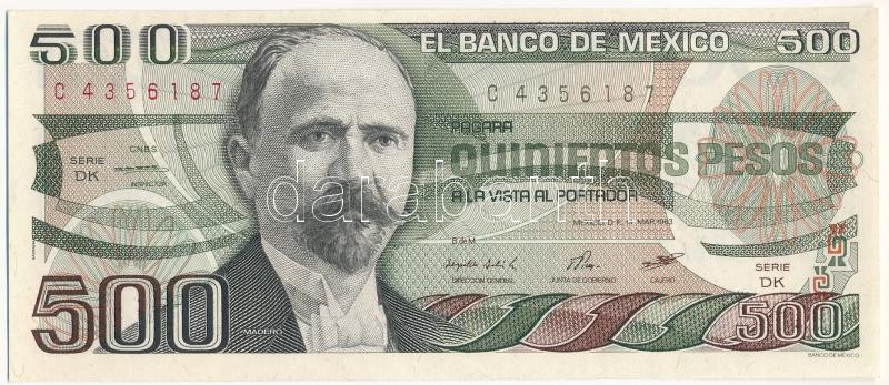 Mexico 1983. 500 Pesos &... https://www.darabanth.com/hu/498-Gyorsarveres/498.0/Numizmatika/Kulfoldi-bankjegyek~1000103/Mexiko-1983-500P-C4356187-TUNC3Cbr-3E-Mexico-1983-500-Pesos-C4356187-CUNC3Cbr-3E-Krause-85~II3291538