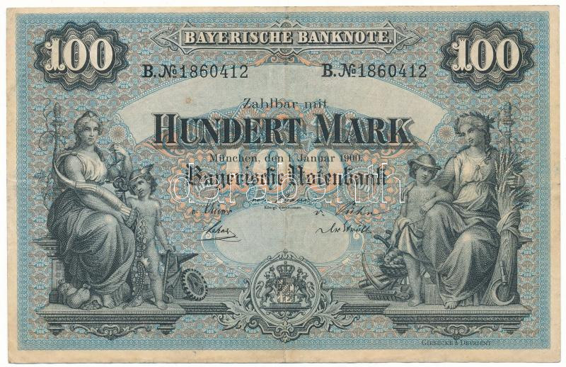 Német Birodalom / Bajorország 1900. 100M vízjeles papíron T:F erős pap...