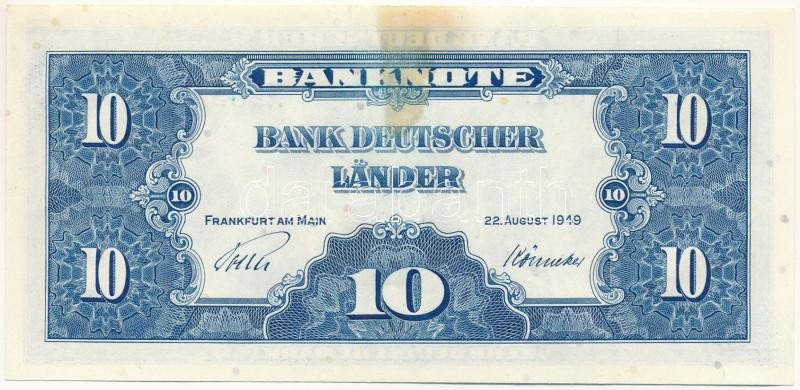 Német Szövetségi Köztársaság 1949. 10M "N2652081F" T:AU,XF hajtatlan, de fo.